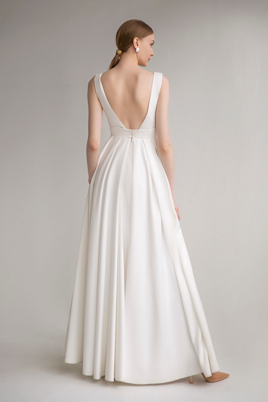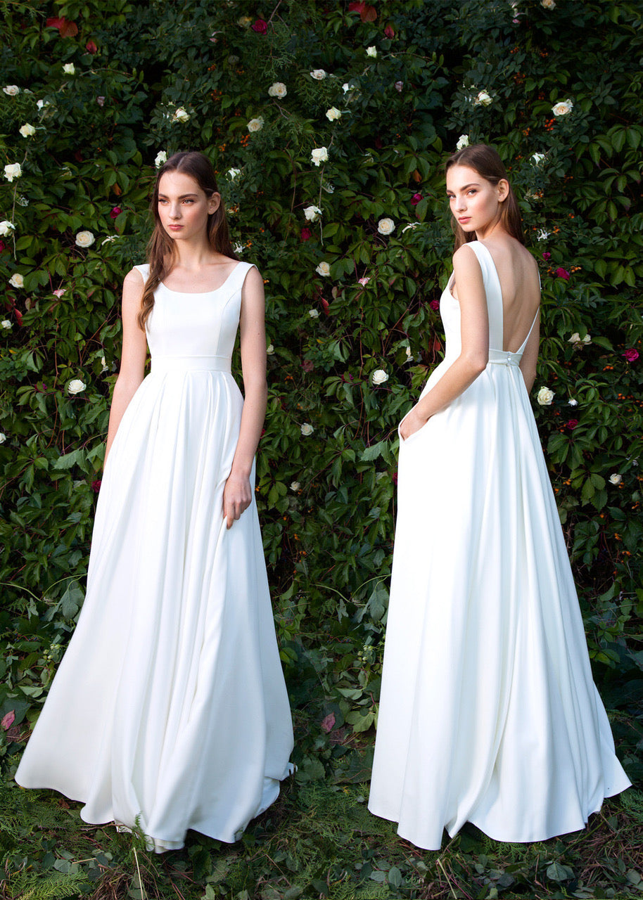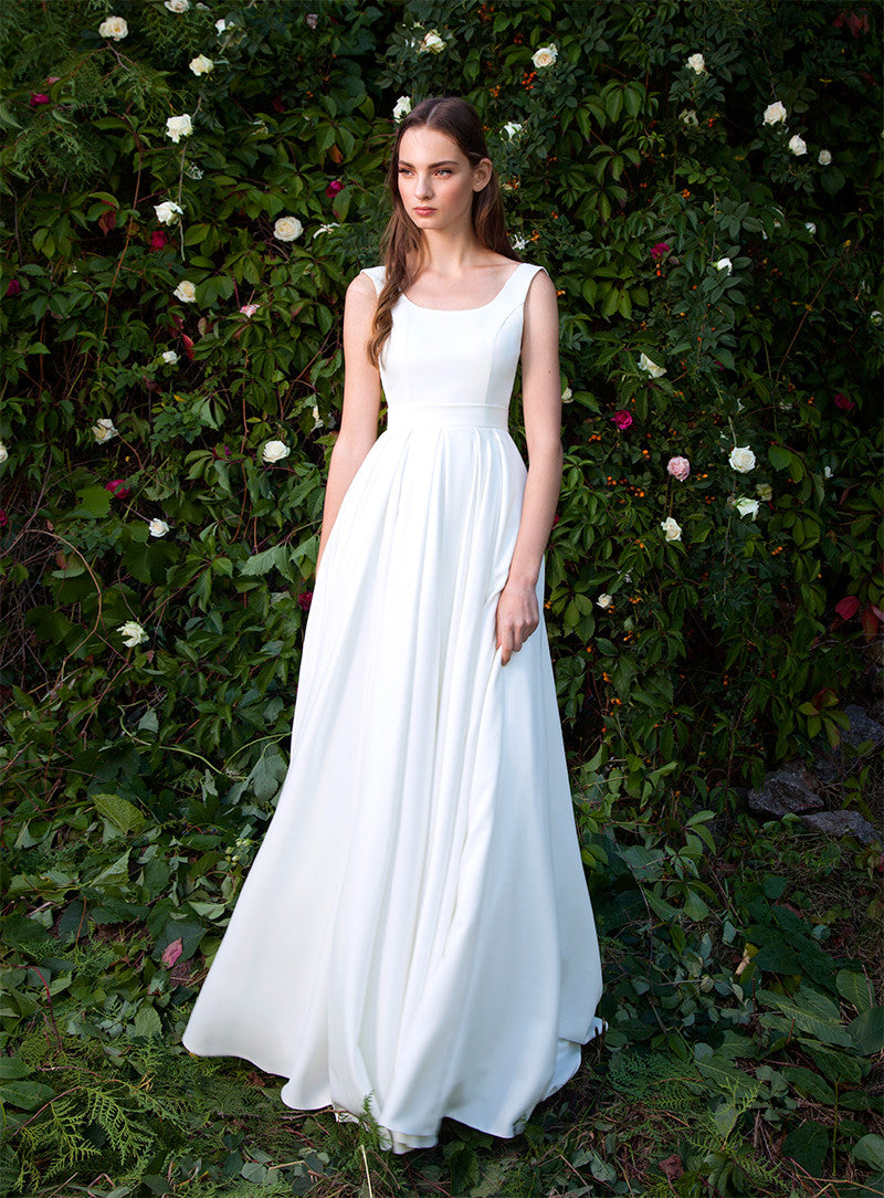 Elegancka klasyczna suknia Emma idealnie pasuje zarówno do kameralnego, rodzinnego przyjęcia, jak i do wielkiej imprezy. Krój w kształcie litery "A" jest najbardziej uniwersalny, więc każda Panna Młoda będzie wyglądała olśniewająco w tej sukni. To jest pewny wybór dla tych Panien Młodych, które chcą czuć siebie komfortowo, wyglądając elegancko!